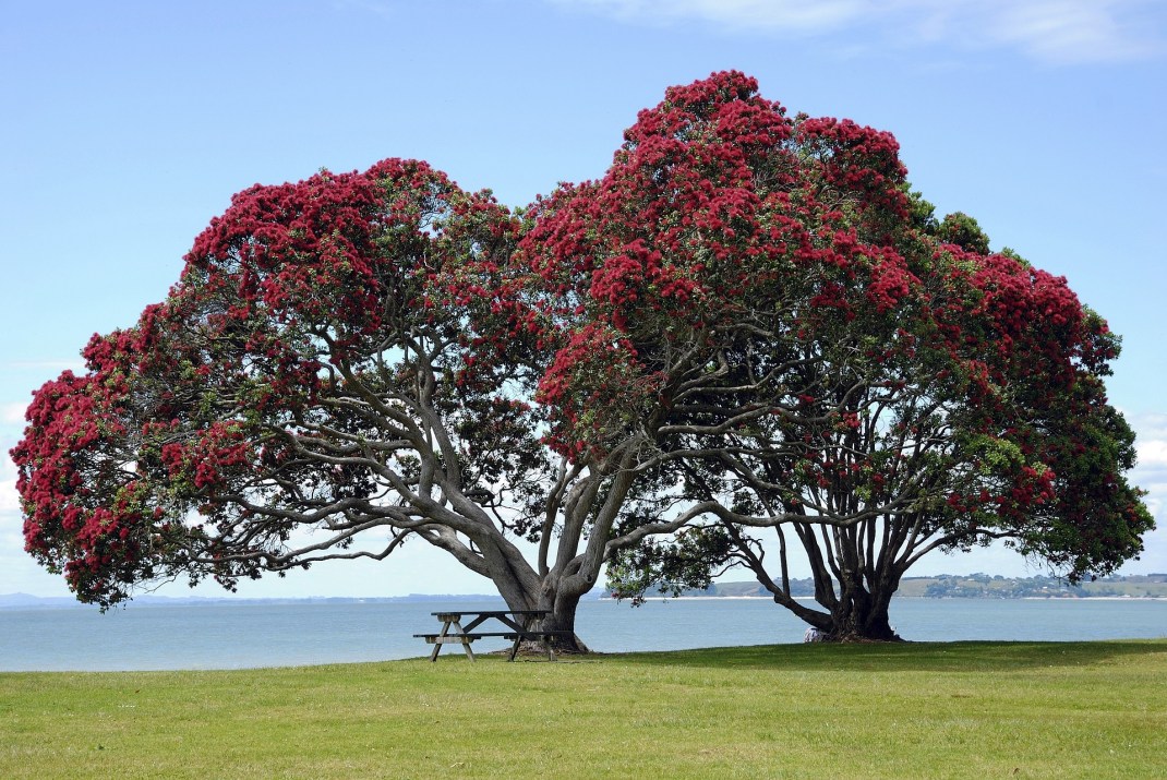 Christmas trees are a staple feature in many homes around the end of the year, along with stockings, wood fires, and hot cocoa. All of these are fitting for a visit from the frigid North Pole, but in the southern hemisphere the weather is more appropriate for barbecues on the beach. In New Zealand, residents have taken advantage of the early summer weather by adopting a particularly festive local tree (Pohutukawa) as the symbol for Christmas on the island.